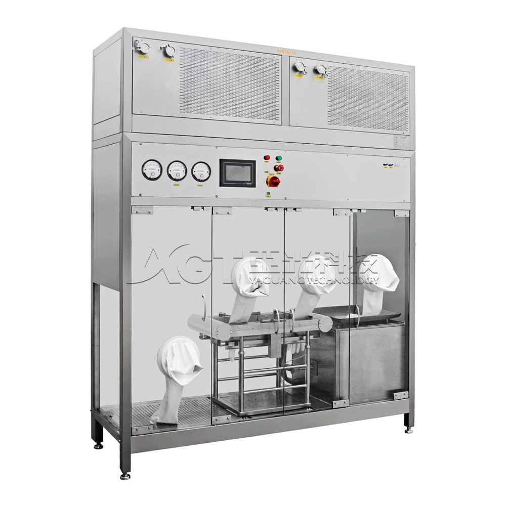 自動(dòng)密閉出料裝(zhuang)置 俗稱"象鼻子(zi)出料裝(zhuang)置",能(néng)夠有(yǒu)效避免膠塞出料時與外界接觸造(zao)成(cheng)污染; 出料係(xi)統可(kě)進(jin)行CIP咊(he)